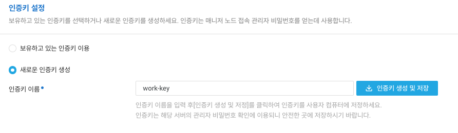 생성될 워커노드에 접속할 인증키를 설정합니다.