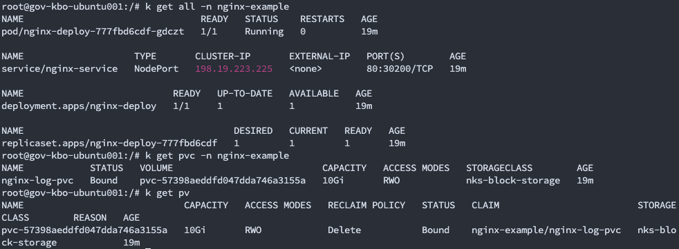 복구요청 이후 nginx-example 네임스페이스의 오브젝트들이 복구된 것을 확인합니다.